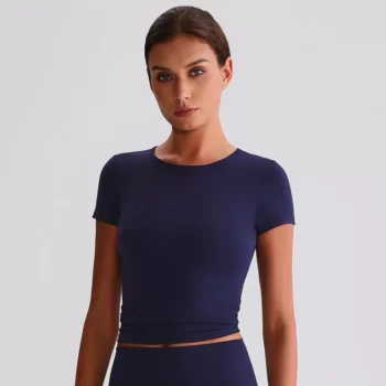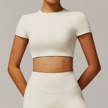 Women’s Quick-Dry Cropped Yoga T-Shirt – Breathable Slim Fit Activewear