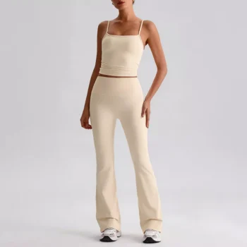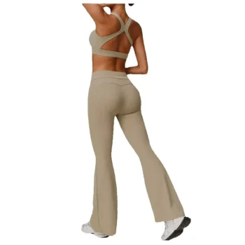 2-Piece Seamless Yoga Set with Bell Bottoms & Crop Top for Women