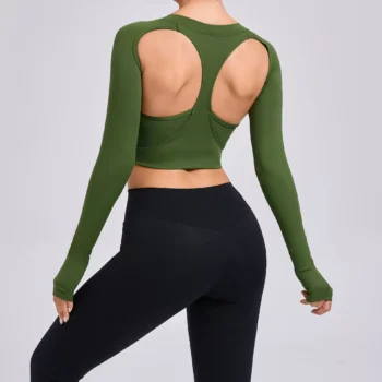Women’s Quick-Dry Long Sleeve Yoga Crop Top – Breathable & Lightweight