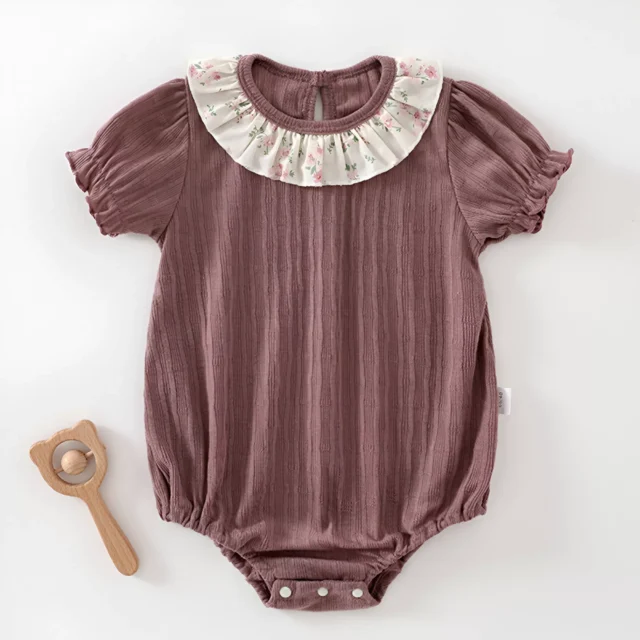 Made from soft, lightweight breathable polyester fabric, this romper is gentle on sensitive skin and ideal for summer days. The short sleeves and O-neck collar make it easy to slip on and off, while the stretchable design ensures a comfortable fit as your little one moves, crawls, and plays. The delicate floral patchwork adds a touch of elegance and a pop of color, perfect for your tiny trendsetter.