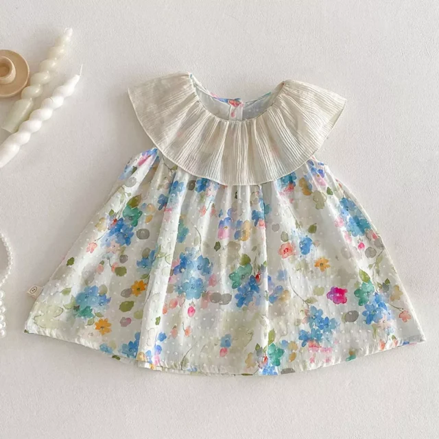 This beautifully tailored dress features an A-line silhouette that offers a comfortable fit while allowing room for movement and play. The sleeveless design is perfect for sunny days, while the ruffled collar adds a delicate and fashionable touch. Made with breathable cotton and durable polyester, the fabric keeps her cool and comfy without sacrificing style. The floral ink wash design gives this piece a unique artistic vibe, setting it apart from ordinary kids’ dresses.