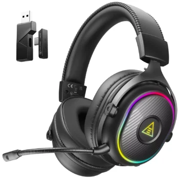 Wireless Gaming Headset with 2.4GHz USB/Type-C, Bluetooth 5.3, Noise-Cancel Mic