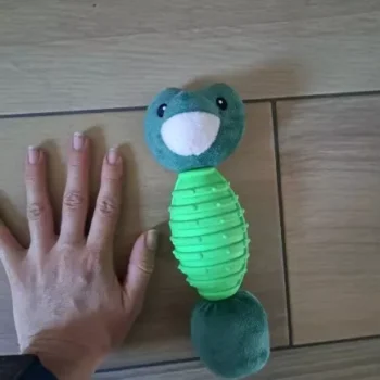 This toy features an engaging squeaky sound that grabs your dog’s attention and encourages active play. The soft fleece texture feels gentle on the gums, while the tough TPR core provides satisfying resistance that helps clean teeth and massage gums with every chew. It’s the ideal companion for indoor playtime, crate time, or a bonding session between you and your furry friend.