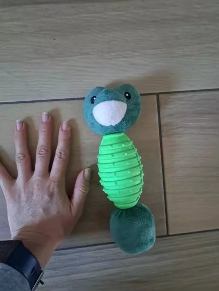 I have tried many toys to keep my energetic pup busy but this one tops them all! The squeaky sound adds an extra layer of fun that gets him excited every time he plays with it. What impresses me most is its durability - despite being used (and abused) daily, there are no signs of wear or tear yet. This plushie truly combines entertainment and durability in one package.