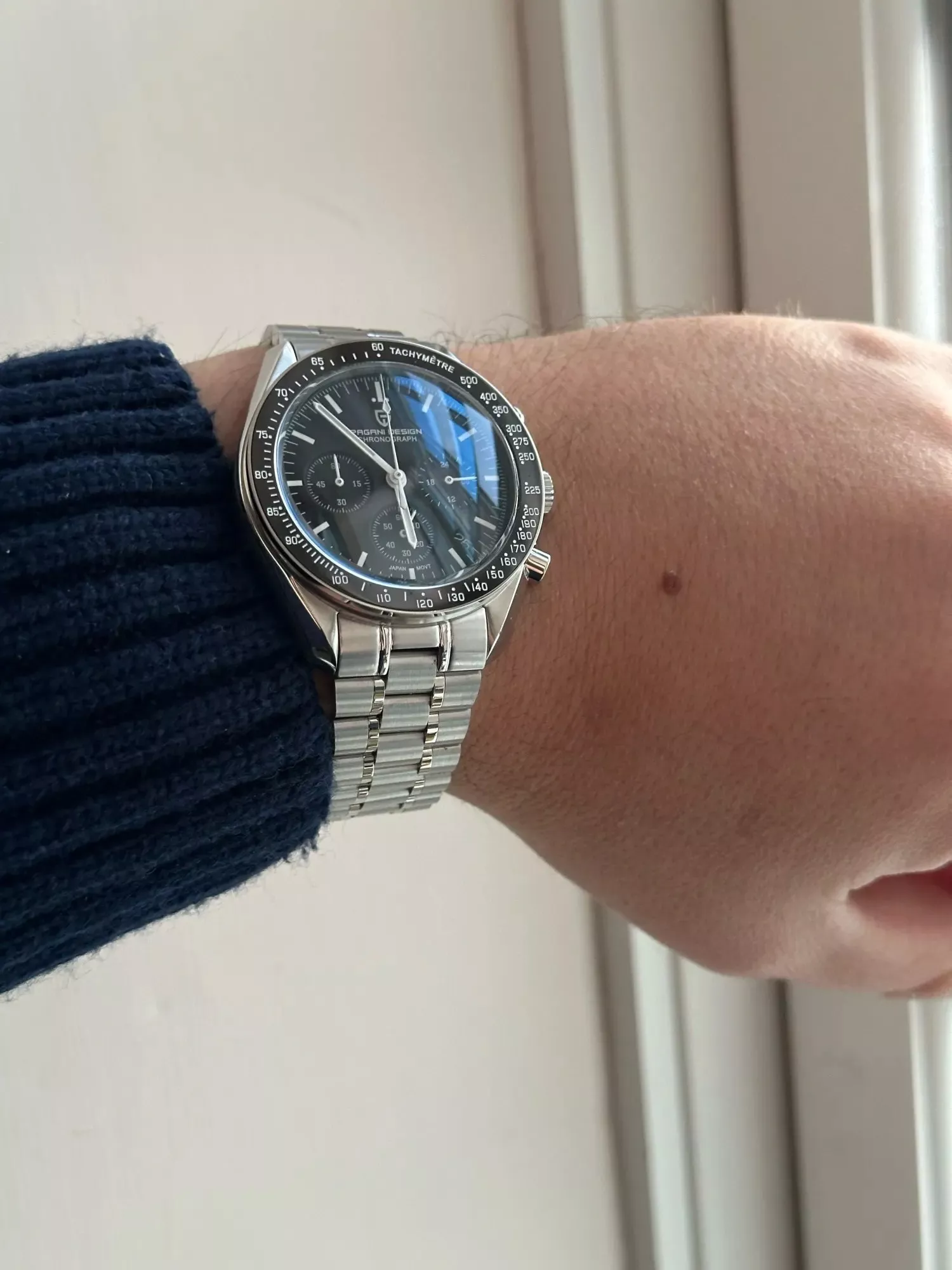 This chronograph doesn’t just tell time—it tells a story. A story of durability, sophistication, and unmatched versatility. With a design that pays tribute to iconic space-age watches, it feels as at home with a tailored suit as it does with a leather jacket or sports gear. You’re not just wearing a watch; you’re wearing confidence.
