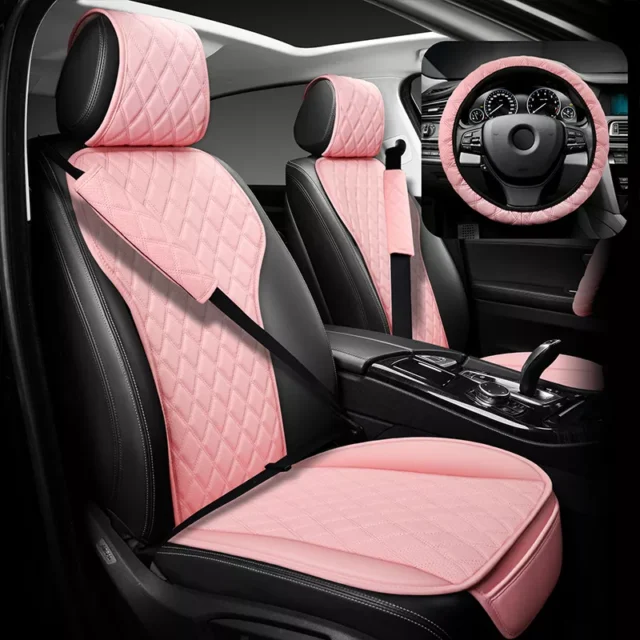 What makes this product special? It’s not just about looks. With thoughtful features like side airbag compatibility, built-in front pockets for extra storage, and a snug, custom-like fit, this set goes beyond typical seat covers. The steering wheel cover, seatbelt shoulder pad, and cushion all match in design, tying your interior together effortlessly.