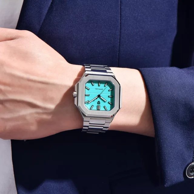 Crafted with a robust stainless steel case and a sleek square design, this luxury wristwatch stands out with clean lines and a sophisticated look. The sapphire crystal dial window ensures premium scratch resistance, while the luminous hands keep you on time — even in low light. With water resistance up to 165 feet (5ATM), it’s perfect for everyday wear, rain, and even occasional splashes.