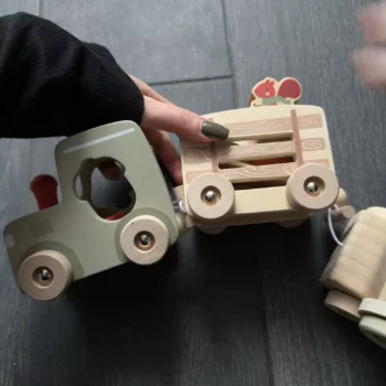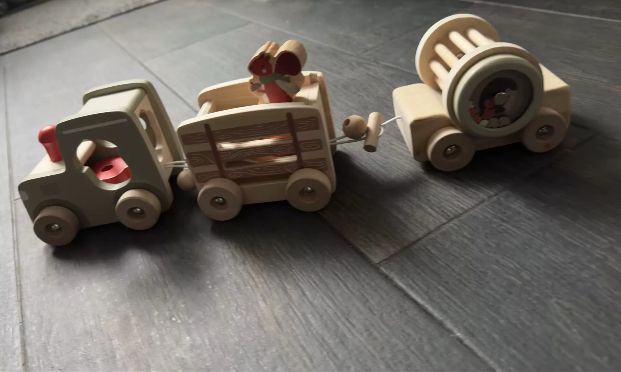 This wooden train set has been a fantastic addition to our playroom. The design is so charming, it's almost like having an extra piece of decor! But most importantly, my child absolutely loves it. They've spent countless hours connecting and disconnecting the spliced train cars - such a clever way to teach problem-solving skills. And they're always pleasantly surprised by the bell sound when they push or pull the trolley along.