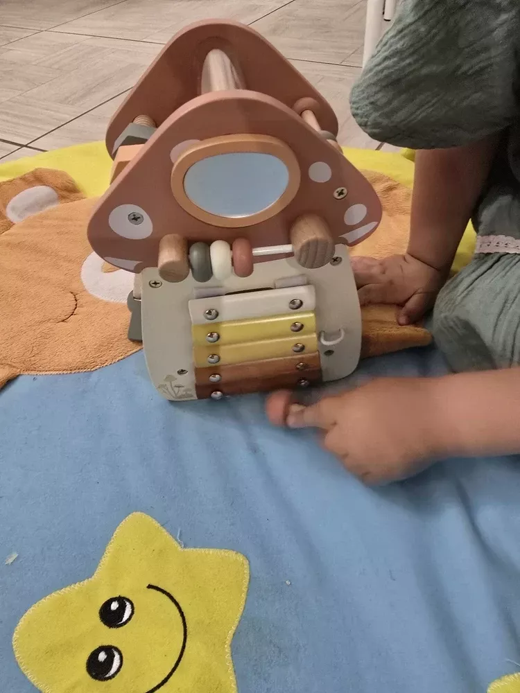 i’m incredibly pleased with this 5-in-1 wooden puzzle, train, and stacking set which offers a comprehensive play experience that’s both fun and educational my child can stack colorful mushrooms, fit the castle pieces together, and then use the train for imaginative scenarios all of which promote fine motor skills, hand-eye coordination, problem-solving, and creative thinking the natural wood finish with smooth edges ensures safety while the vibrant but balanced colors are visually stimulating without being too loud the design encourages independent exploration as well as family interaction the pieces are sturdy and well-crafted to endure rough play and frequent use the train adds motion and storytelling potential which deepens engagement and sparks creativity this set has quickly become a favorite in our home providing varied learning opportunities in a single toy it’s an excellent investment for parents looking to enrich their child’s developmental playtime with a beautiful and timeless wooden toy i highly recommend it without hesitation
