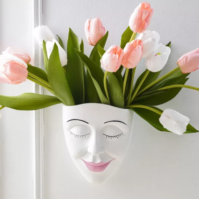 Crafted from high-quality resin, this compact wall vase offers durability without compromising on aesthetics. The design features a stylized face that blends effortlessly into any contemporary or eclectic interior, making it a standout conversation piece even without flowers. Add greenery, dried blooms, or minimalist stems to bring life and softness to the bold silhouette.
