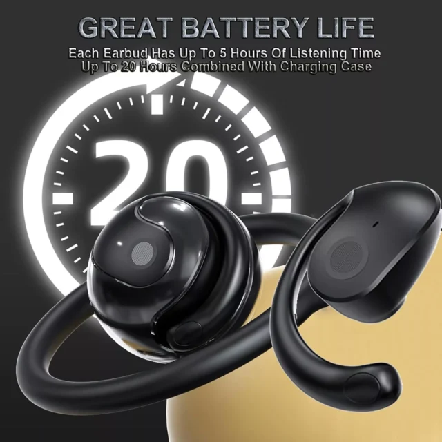 Unlike traditional earbuds, this headset rests comfortably on your ears without applying pressure inside the ear canal. Thanks to its ergonomic ear hook design, it stays secure even during intense physical activity. The lightweight frame combined with a flexible fit ensures all-day comfort. The integrated Bluetooth 5.3 chip guarantees quick pairing, enhanced range, and seamless device switching.