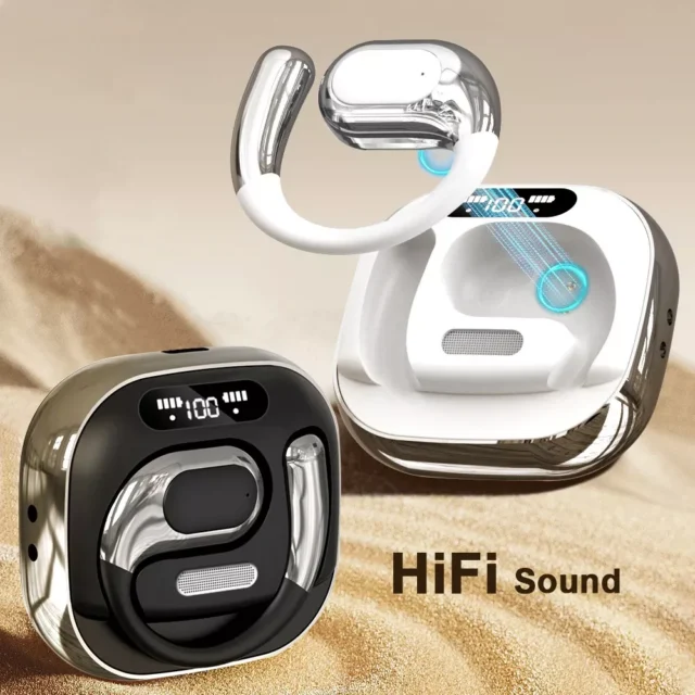 • Open-ear comfort – Ear hook design ensures a secure fit without blocking your surroundings
