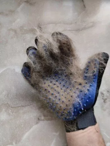 These grooming mitts are revolutionizing the way I handle my dog's shedding! Their use in grooming sessions has simplified the deshedding process significantly. They adeptly collect loose hair, enhancing my pet's coat to look and feel superb. Essential for any pet owner grappling with shedding issues, they've made grooming remarkably easier.