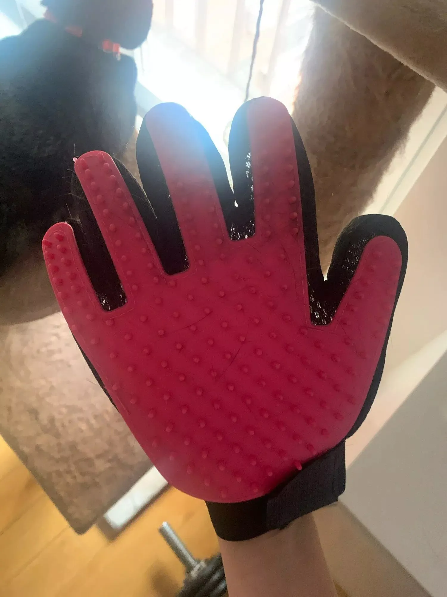 The gloves arrived in just two days with free shipping. When I first used them on Koda, he was immediately at ease, enjoying the massage. Cleaning the gloves was straightforward, and following the directions for a more effective hair removal process proved to be incredibly effective. Koda, who previously detested brushes and baths, now relishes his grooming sessions with these gloves, a complete turnaround from his usual aversion to grooming.