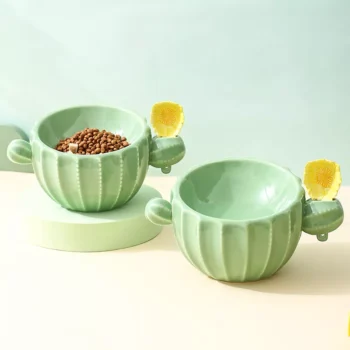 Elevated Cactus Ceramic Cat Bowl – Cute Pet Feeder for Food & Water