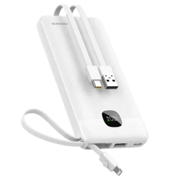 10000mAh Fast Charging Power Bank with LED, Display & Built-in Cables