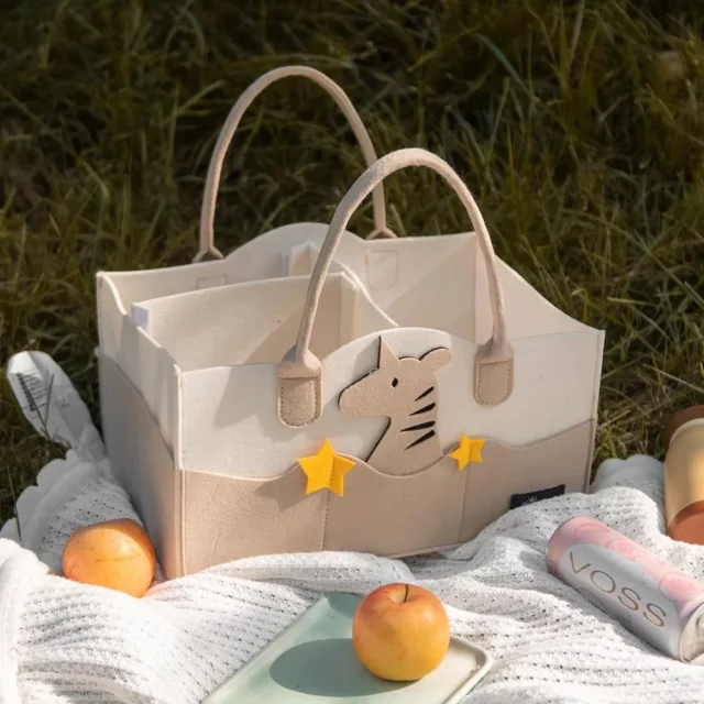 Crafted from durable, high-quality felt with reinforced handles, this caddy is built to last through every stage of your baby’s early years. The interior features adjustable compartments, letting you customize the space for diapers, wipes, creams, pacifiers, toys, and more. Its adorable bear cartoon design adds a playful personality to your nursery, while the soft neutral tones blend seamlessly into any décor — perfect for both boys and girls.