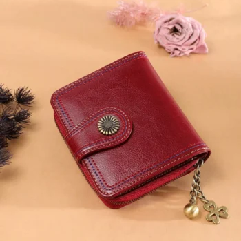 Vintage Red Short Wallet with Zipper Clutch & Card Holder for Men & Women