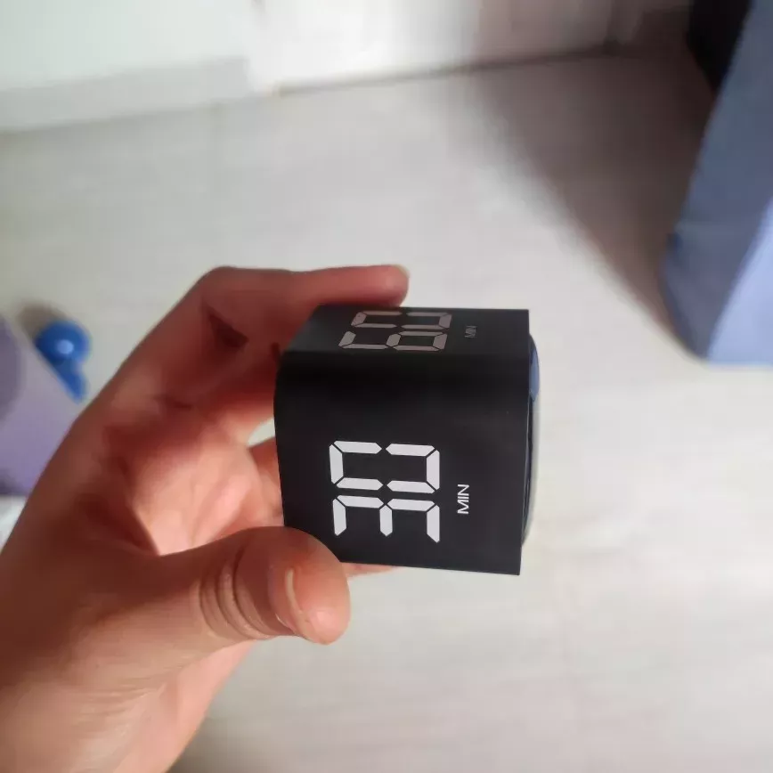 this cube timer has exceeded my expectations. the gravity sensor is very intuitive; just flip it to set the time and it starts automatically. the LED display is bright and easy to see, making it perfect for keeping track of time during various tasks. i've been using it for work, study, and even while cooking. the compact size and portability are great, allowing me to take it anywhere. the battery life is impressive, lasting through many uses before needing a recharge. it's a fantastic tool for staying on top of tasks and managing time effectively. overall, i'm very pleased with this timer and highly recommend it.