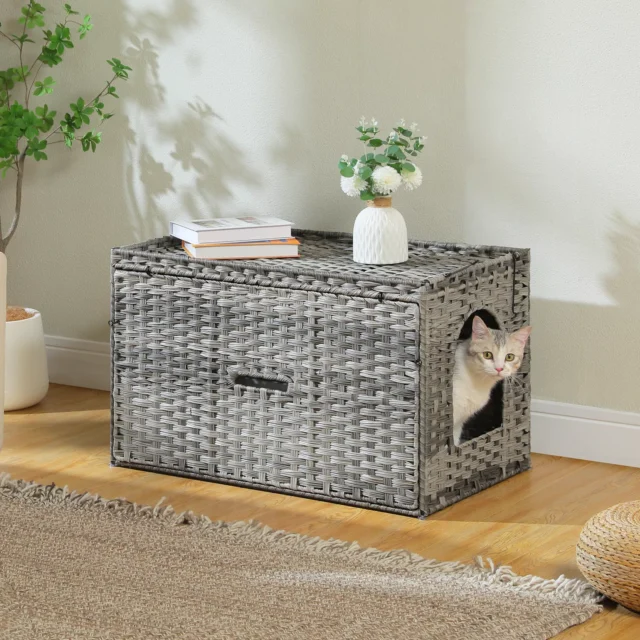 Upgrade your home and your pet’s comfort with this multi-purpose rattan cat enclosure. It’s the perfect solution for keeping litter out of sight, odors under control, and your space looking its best. Whether you need a discreet litter area or a cozy hideaway for your cat, this enclosure delivers both elegance and functionality.