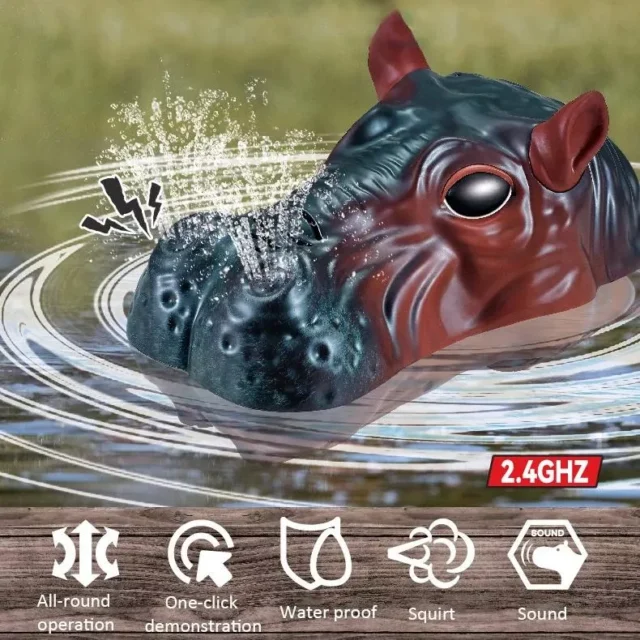 Bring the wild to the water with the Remote Control Hippo Water Jet Boat—a fun, lifelike RC toy that thrills kids with realistic hippo design and powerful aquatic performance. With its dual-propeller system and advanced 2.4GHz remote control, this electric water toy gives children full control for forward, backward, left, and right movement, as well as auto demonstration and water spray effects. It’s more than just a toy—it’s an adventure in every splash!