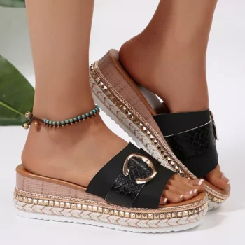Women’s Double Buckle Wedge Sandals – Comfort Summer Platform Slides