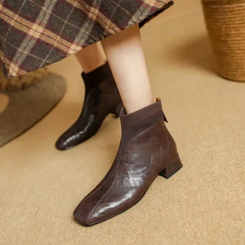 Women’s Suede Ankle Boots with Low Block Heel and Square Toe