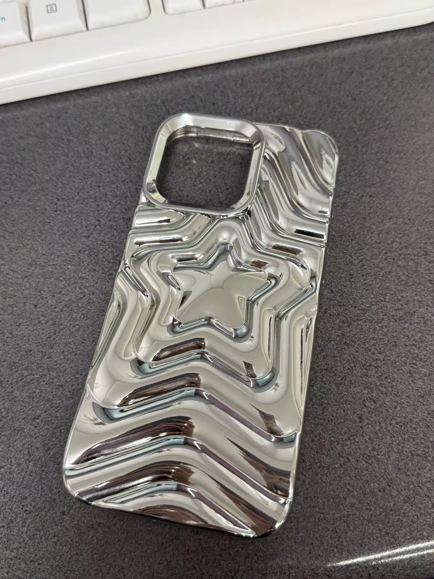 This case is perfect for anyone who wants to add a bit of bling to their daily essentials while keeping their phone safe from life’s little accidents. Whether you’re going for a casual look or dressing up, the chic silver chrome design complements any outfit. It’s lightweight, easy to snap on, and offers a comfortable grip that feels just right in your hand. With its standout star pattern and premium finish, this case is more than just protection — it’s a fashion statement.