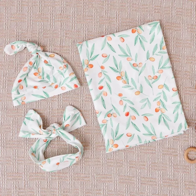Soft Baby Swaddle Blanket Set with Matching Hat and Headband Bow
