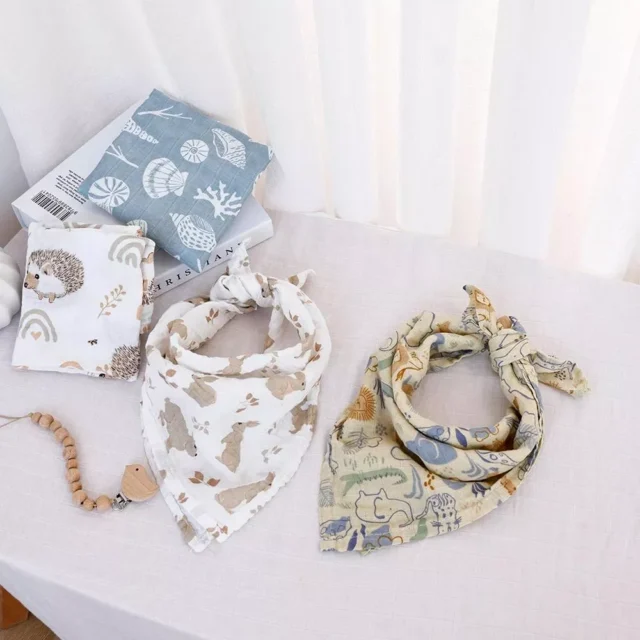 Keep your baby clean and comfortable with this 4-piece set of soft muslin cotton bibs and burp cloths. Designed for newborns and infants up to one year old, these breathable cloths provide gentle protection during feeding and burping. The lightweight cotton fabric feels tender against delicate skin, helping to prevent irritation and keep your baby cozy all day long.