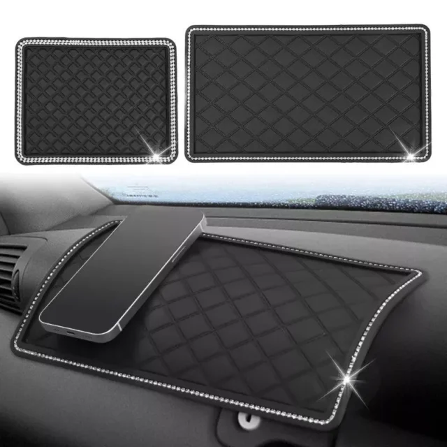 Our car mat’s superior grip technology is ideal for anyone on the move. Its PVC material ensures durability, while the sophisticated rhinestone decoration adds a touch of luxury. Sized perfectly at 18*14cm and 26*15cm, it fits neatly on most dashboards, center consoles, or any flat surface within your vehicle. It’s not just limited to cars – use it on boats, planes, trucks, or SUVs. The best part? No sticky residue or damage to your dashboard. This mat is made to move with you and can be repositioned effortlessly, ensuring your essentials are secure at all times.