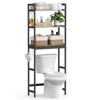 Over-The-Toilet Bamboo Storage Shelf with Adjustable Shelves & Paper Holder