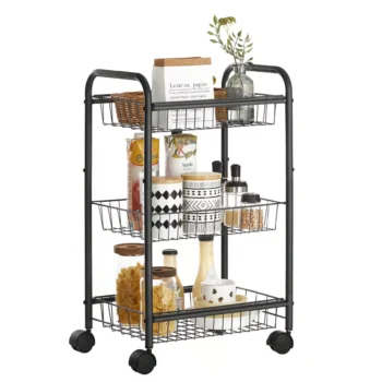 3-Tier Metal Rolling Storage Cart with Lockable Wheels and Handle