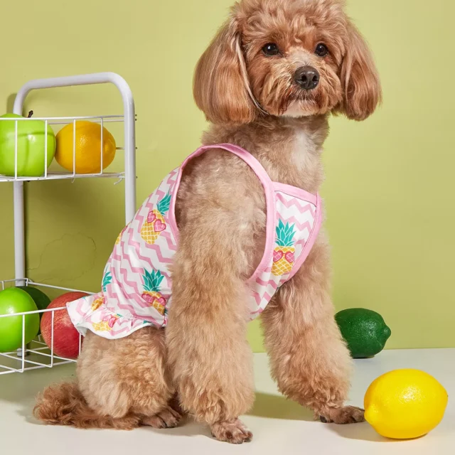 This doggie outfit isn’t just about looking cute—it’s also crafted with thoughtful design. The pineapple print is bright and cheerful, capturing the fun spirit of summer. The ruffled hem and pink zigzag pattern add a sweet, feminine touch that stands out from basic pet clothes. It’s more than just an outfit—it’s an expression of your pet’s playful personality.