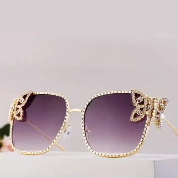 Oversized Square Rhinestone Butterfly Sunglasses for Women