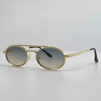 Vintage Oval Metal Sunglasses UV400 for Men & Women with Gradient Lenses