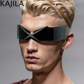 Oversized Y2K Punk Shield Sunglasses Steampunk One-Piece UV400 Sports Goggles