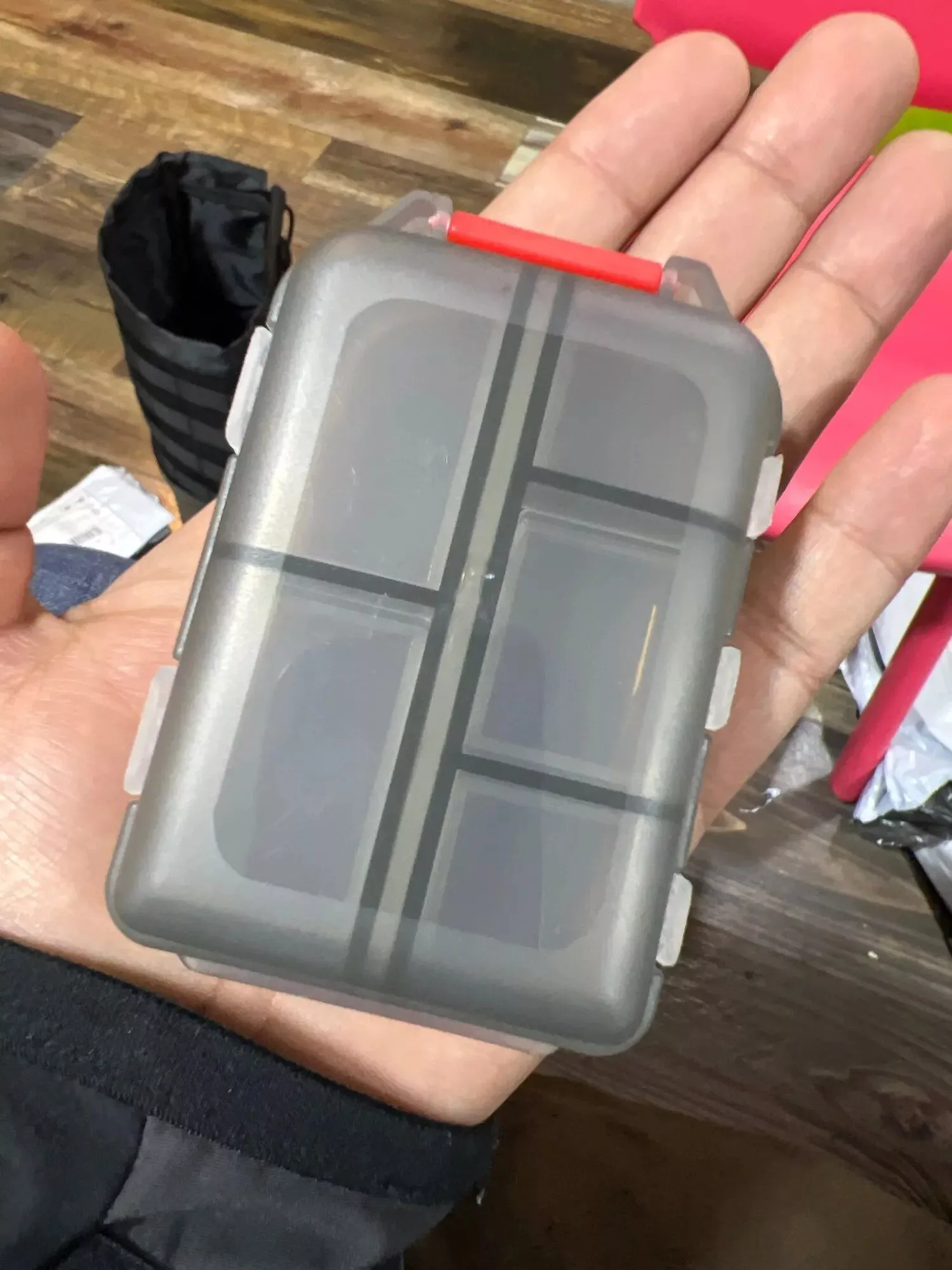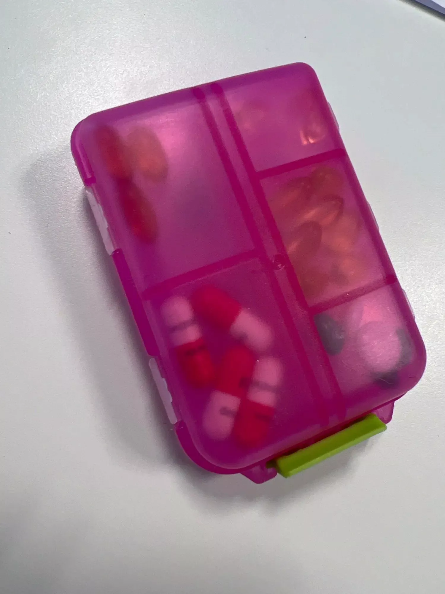 I adore this versatile pill box. Its numerous compartments make it suitable for more than just pills, and its size is just right—not too large to fit comfortably in a purse. I carry mine with me constantly. In addition to holding pills, it serves as a handy storage spot for small items like buttons, ensuring they won't get lost. The flexibility of the compartments allows you to store whatever you need, making it perfect for coordinating with different color schemes or organizing various items.