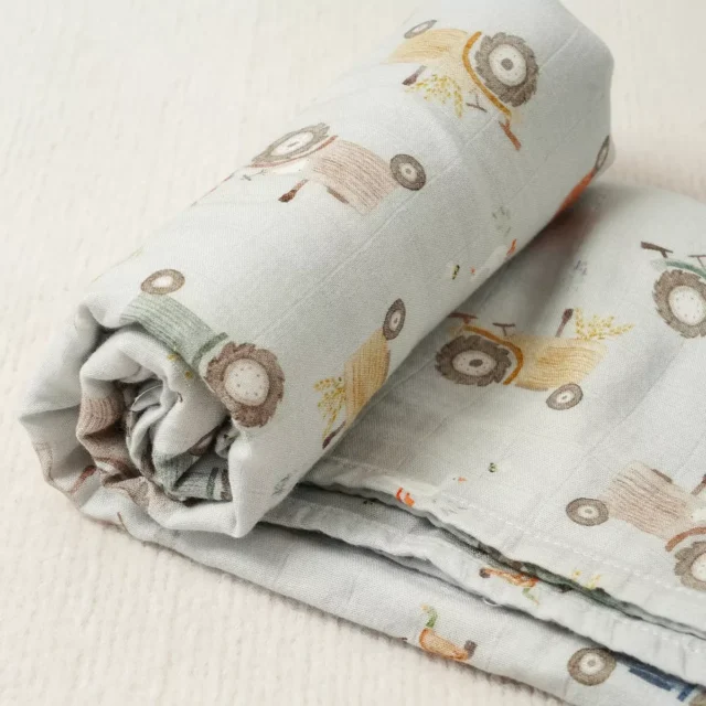Our swaddle blanket is made from a luxurious blend of bamboo fiber and cotton—two of nature’s softest and safest materials. The natural fibers offer excellent breathability, making it ideal for use during warm summers and chilly winters alike. Featuring adorable printed patterns, the blanket adds a touch of charm to every cuddle. With a generous size, it’s large enough to grow with your child through multiple stages, from swaddling as a newborn to use as a towel or light cover for toddlers and young kids.