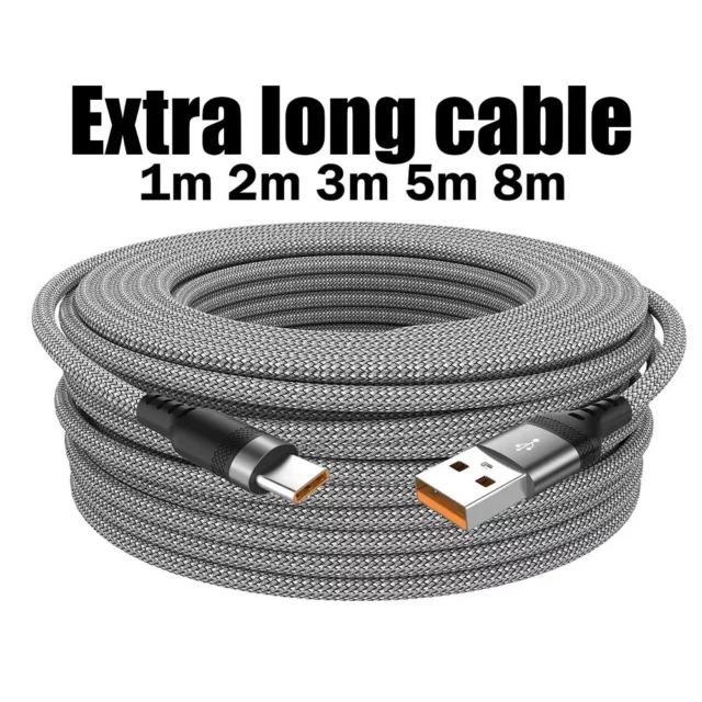 Say goodbye to slow charging and tangled cords. This 8-meter (over 26 feet) USB-C charging cable delivers a super-fast 5A current to keep your devices powered up quickly and efficiently. Whether you’re at home, in the office, or relaxing on the couch, enjoy the freedom to charge and use your device without being stuck next to the outlet.