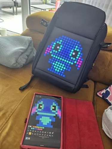 This backpack is not just functional but also super cool! The LED screen lets me display my favorite pixel art wherever I go.