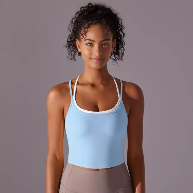 This sports bra is perfect for all seasons and offers everything you need for a confident workout. The sleeveless racerback design allows unrestricted arm movement, while the snug fit minimizes bounce without digging into your skin. Its quick-drying, anti-pilling fabric means you stay comfortable and stylish even after multiple washes.