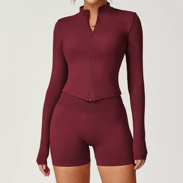 Wear it in spring, summer, fall, or winter. Pair it with matching shorts or a jumpsuit for a complete look. Whether you prefer a snug athletic fit or a slightly looser style, you can choose the perfect size to match your comfort level. This jacket is an essential piece for anyone who wants to combine fashion, function, and performance in their activewear.