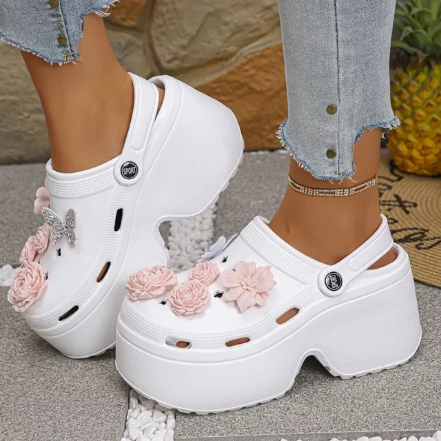Turn heads this summer with these ultra-chic Women’s Platform EVA Clogs Sandals featuring a playful pink flower accent. Designed for women who love fashion and function, these stylish wedge sandals elevate your warm-weather wardrobe while keeping your feet happy all day long. Whether you’re headed to the beach, running errands, or relaxing at a garden party, these shoes are your perfect companion for casual elegance.