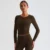 This yoga crop top features a flattering round neckline and a cropped silhouette that complements your natural shape. With a slim fit and full-length sleeves, it’s ideal for layering or wearing solo. The breathable broadcloth knit fabric ensures you stay cool, dry, and focused, even through the most intense sessions.