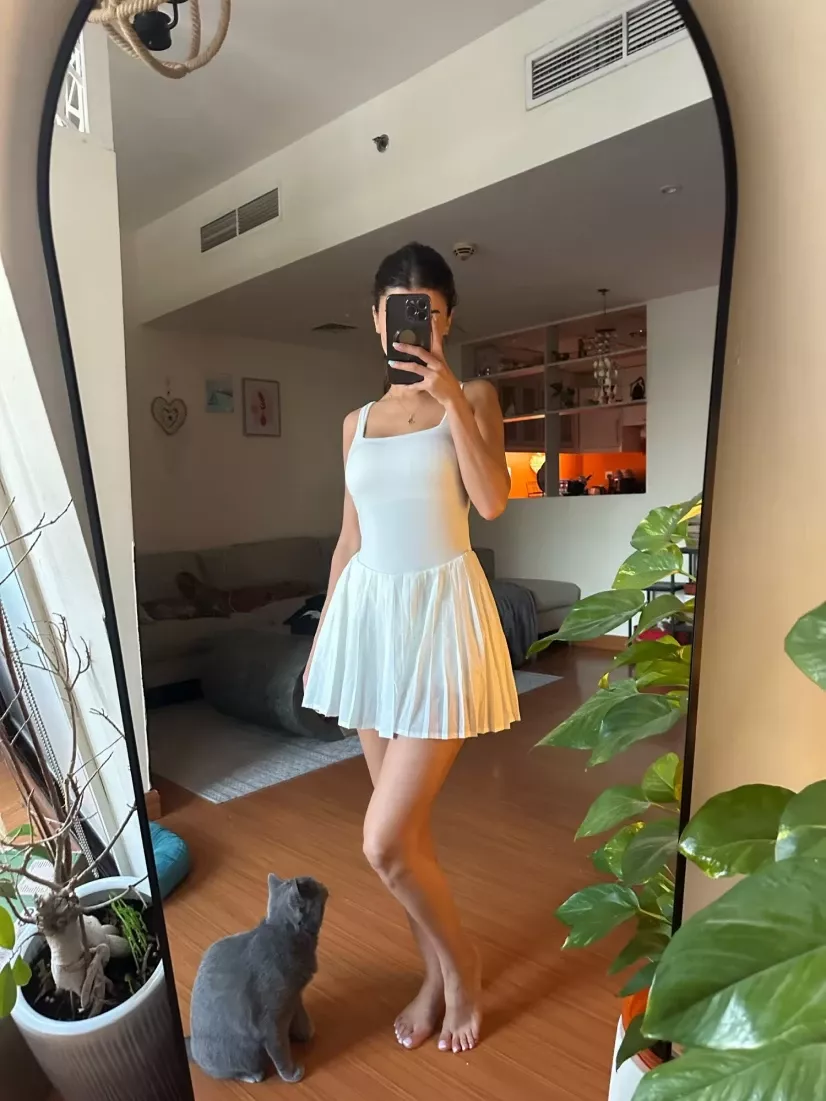 Crafted from a blend of four-way stretch fabric and soft, cloud-like inner shorts, this athletic piece combines breathable comfort with supportive structure. The skirt gives it a feminine and flirty touch, while the fitted top contours your body, enhancing your natural silhouette without compromising on comfort. Designed to move with you, this jumpsuit ensures you never have to worry about adjustments mid-workout.