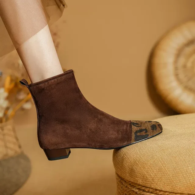 Perfect for autumn and winter, these ankle boots pair effortlessly with jeans, skirts, or dresses. Their low heel offers comfort for all-day wear, making them ideal for work, casual outings, or evening events. The combination of genuine suede and leather lining ensures they not only look stunning but also feel luxurious on your feet. Unlike ordinary boots, the square toe and sleek back zip give them a unique, fashionable edge that stands out in any wardrobe.