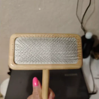 This grooming brush is crafted with a smooth, ergonomic wooden handle that fits comfortably in your hand, giving you full control while brushing. The fine teeth are designed to untangle knots and lift away loose hair without scratching or irritating your pet’s skin. It’s completely free from harsh chemicals and made with pet-safe materials, ensuring a stress-free experience for both you and your pet.